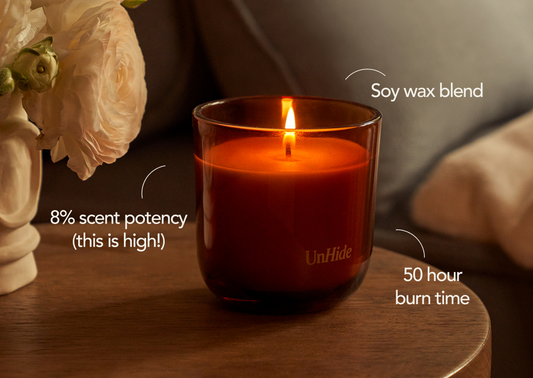 This is the PERFECT Fall candle. It's so hard to find a subtle but sophisticated Fall scent that isn't too sweet, fruity, or gourmand (pumpkin and vanilla are not for me). This checks all my boxes of being fresh, woody, and subtle while still having a bit of a spicy Fall edge. Plus the matte orange vessel is so classy AND fits very well in my minimalist decor. I immediately ordered three more for next year in case UnHide runs out or stops selling it (please don't!).